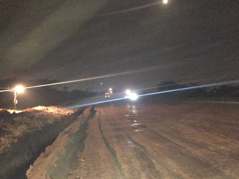 明亮的探照燈刺破黑暗的夜瓊,開(kāi)辟出一片亮色。亮光里,絡(luò)繹不絕的車(chē)輛安靜行進(jìn),相隔不遠(yuǎn)的施工人員有序指揮,裝載,回填,推土、碾壓,所有的工序有條不紊,一條寬闊的路基漸漸成型!