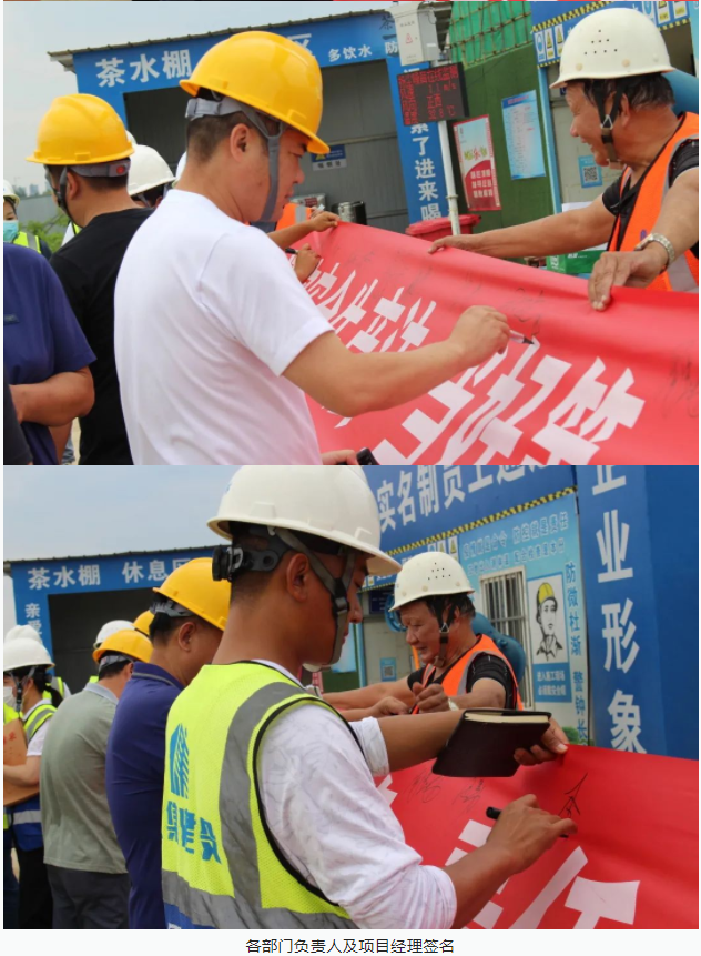 活動開始,集團董事長徐濤、副總經(jīng)理徐家富及各部門負責(zé)人、各項目經(jīng)理率先在“遵守安全生產(chǎn)法,當(dāng)好第一責(zé)任人”條幅上鄭重簽名,寫下對肩負安全生產(chǎn)責(zé)任的承諾,隨后各項目施工員、安全員紛紛在條幅上寫下自己的名字,表達對做好安全生產(chǎn)相關(guān)工作的信心和決心。
