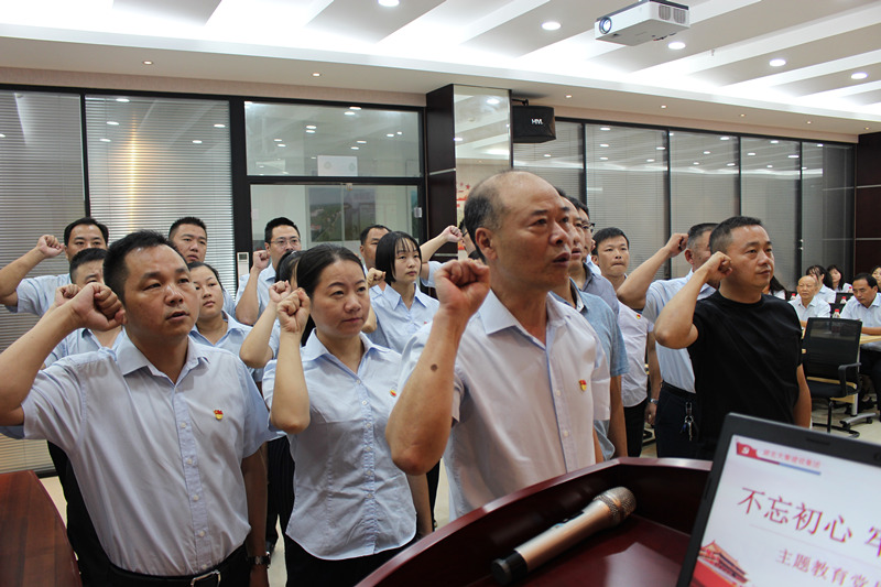 全體黨員重溫入黨誓詞。簡單的80個字,12個標(biāo)點符號,卻組成了這個世界上最令人震撼的話語,每一句都表達著大家對黨和人民的深情。